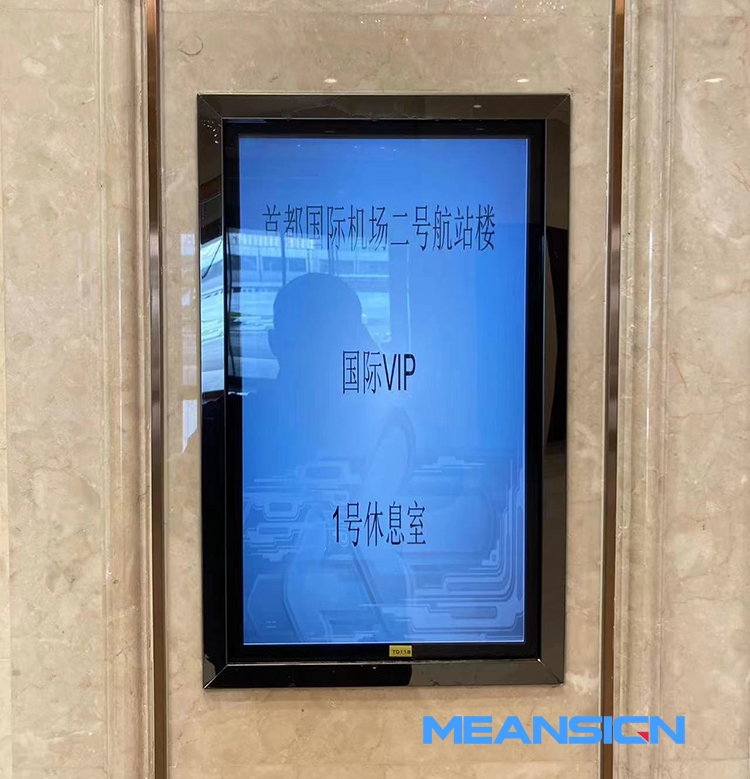 在2號航站樓VIP休息區(qū),每個休息室門口安裝信息發(fā)布一體機(jī),采用嵌入式豎屏包邊安裝方式,與機(jī)場裝修風(fēng)格相融合,更加美觀高端大氣。通過遠(yuǎn)程統(tǒng)一控制顯示屏信息發(fā)布,顯示機(jī)場名稱,休息室名稱,作為一個休息室指示數(shù)字標(biāo)牌。除外,還可以通過信息發(fā)布后臺,將更多編輯好的多媒體內(nèi)容,發(fā)布到所有的信息發(fā)布一體機(jī)上,實(shí)現(xiàn)分屏播放,滿足不同的使用需求。